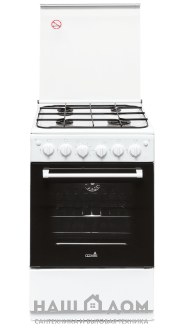 Газовая плита Cezaris ПГ-2150- 12 белый, (розжиг, подсветка, газконтроль, таймер, стекл крышка)
