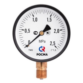 Манометр 100ХМ20Х1,5 6 БАР ТМ-510Р 10 М2 (НИЖНЕЕ РАДИАЛЬНОЕ ПОДКЛ., КОРПУС СТАЛЬ, МИНСТЕКЛО) РОСМА