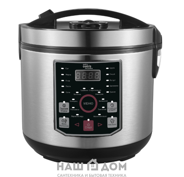 Дополнительные опции: функция хлебопечки; приготовление на пару; таймер; отложенный старт; разогрев; функция поддержания температуры 70-75°С.