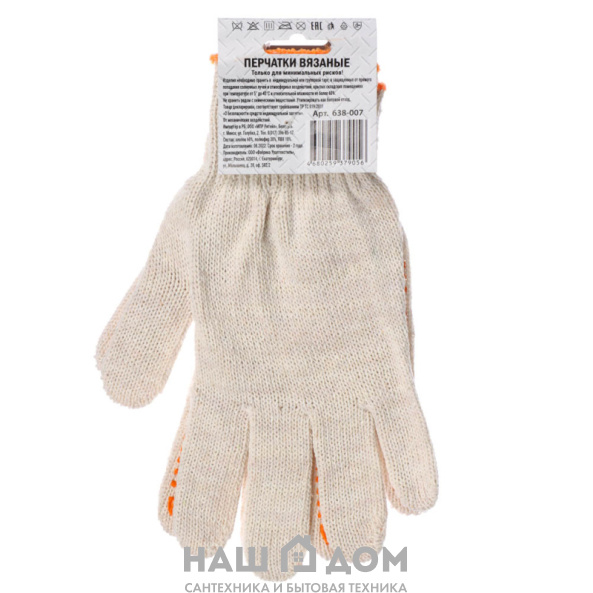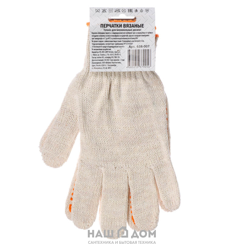 Вязаные перчатки ЕРМАК ЛЮКС х/б с ПВХ напылением, 5 нитей, белые, защищают руки от загрязнений и легких механических повреждений порезов, ссадин.