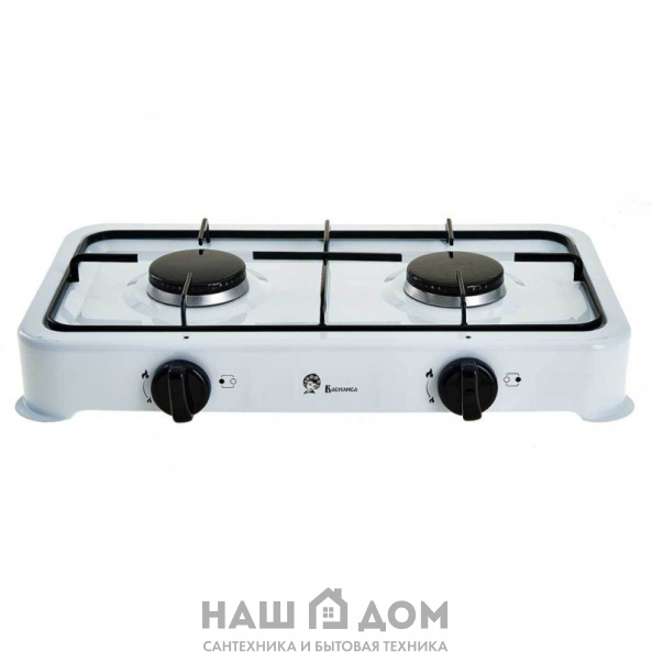 Рабочая поверхность эмалированная. Плита двухконфорочная. Предназначена для приготовления и разогрева пищи в бытовых условиях, только с бытовыми газовыми баллонами. Газовый шланг можно присоединить с двух сторон. Прибор предназначен для работы только на сжиженном газе с бытовыми газовыми баллонами объёмом 5л, 12л, 27 л или 50л.