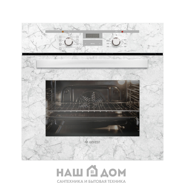 Электрический встраиваемый духовой шкаф "Гефест" ДА 622-02 К52 представляет собой модель в белом цвете с рисунком "мрамор".